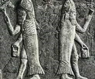 Der Dagonkult war zwar nicht in allen Einzelheiten, wohl aber im Erscheinungsbild (Symbole, Handlungen) weit verbreitet. Das Bild oben rechts zeigt die typische Kleidung eines Dagonpriesters, das Fischkostüm.