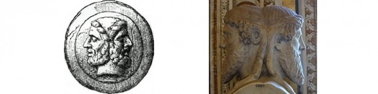 Einer der ältesten römischen Götter ist Janus, von dem sich der Monatsname Januar ableitet. Er ist einer der wenigen Götter in der römischen Götterwelt, der keine Entsprechung in der griechischen Mythologie hat. Er ist der römische Gott des Anfangs und des Endes und ist doppelgesichtig, weil er nach hinten und nach vorne schauen kann, so wie das ganz frisch begonnene Jahr! (mit Jahresrückblick! Heute häufig in Kirchen gefeiert) Für die Römer war er auch der Gott der Türschwellen und der Toreingänge, weshalb dort oft ein Abbild von ihm zu sehen war. Der Janus-Tempel steht auf dem Forum Romanum. Er wurde nur in Friedenszeiten geschlossen.