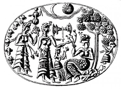 Sumerische Rollsiegel mit dem Baum des Lebens oder Lebensbaum welches sich im Louvre befindet.