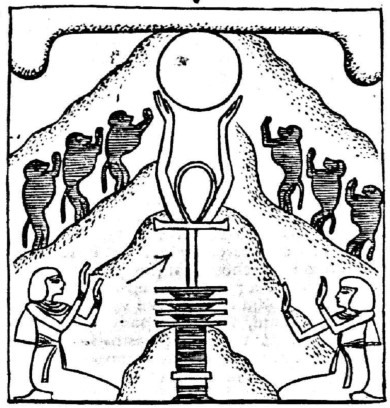 Ägyptisches Zeichen auf Papyrus. Dargestellt - der Sonnenaufgang.