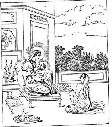 Maja und sein Sohn Buddha. Nach altindischem Original.